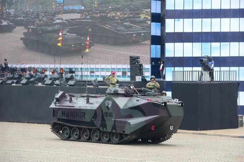 Komandan Pasmar 3 Pimpin Defile Ranpur Marinir di Gladi Bersih HUT Ke-80 TNI