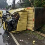 Truk Box Oleng, Tabrak Dua Mobil Terparkir di Bergas