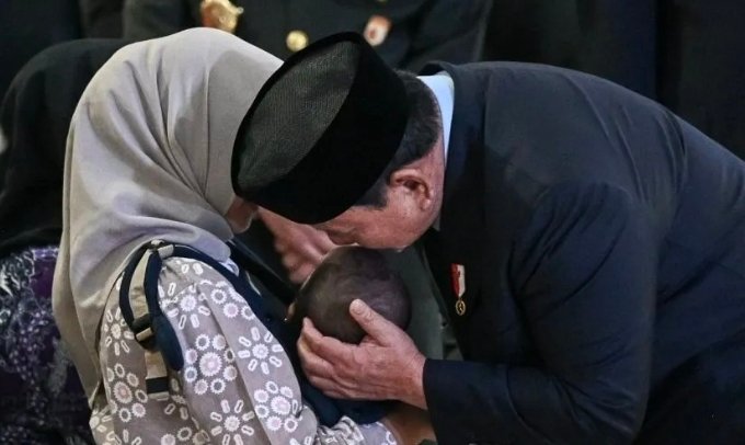 Momen Haru di Bandara Soetta, Prabowo Cium Bayi Prajurit Gugur