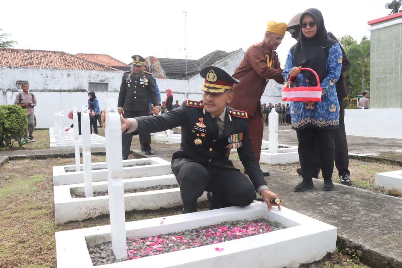 “Hari ini, di bawah langit Indonesia yang merdeka, kita menundukkan kepala penuh hormat mengenang para pahlawan bangsa. Mereka bukan sekadar nama yang terukir di batu nisan, melainkan cahaya yang menerangi jalan kita hingga hari ini,” ujar AKBP Ari Cahya.