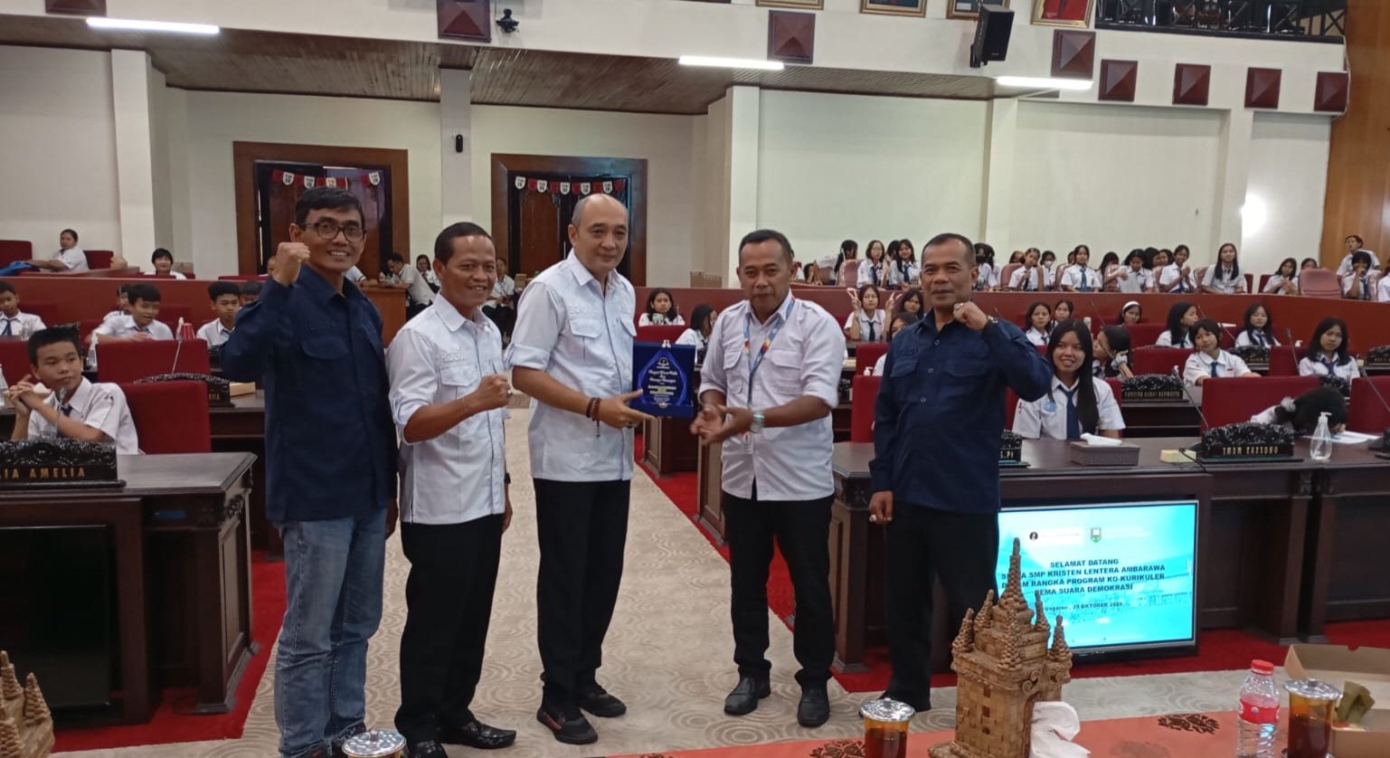 Kegiatan dipandu oleh Sekretaris DPRD Partono, serta didampingi guru dan koordinator sekolah Happy Marhein Laluba dan Silvy Inawati.