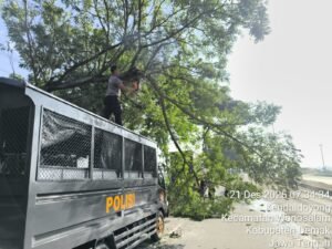 DEMAK | MNNMEDIA.COM – Kepolisian Resor (Polres) Demak, Jawa Tengah, bersama Badan Penanggulangan Bencana Daerah (BPBD) Kabupaten Demak melakukan evakuasi pohon tumbang di exit Tol Kadilangu, Minggu (21/12/2025) pagi. Peristiwa tersebut terjadi sekitar pukul 07.00 WIB dan langsung mendapat penanganan cepat dari petugas gabungan.